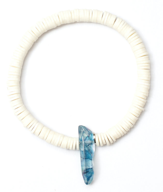 Absolutely one of our favs ๐ย  Powerful blue quartz crystal paired with white 6mm heishi beads gives us Baja vibes!