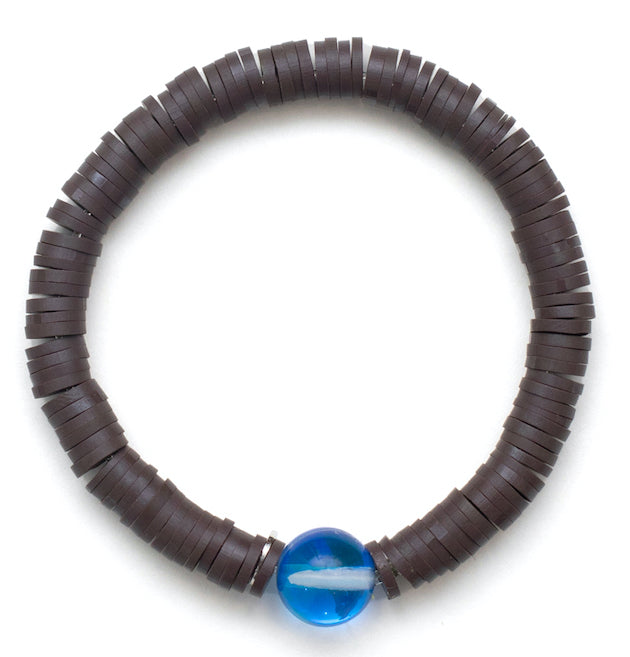 Cozy winter brown 6mm heishi beads paired with a gorgeous blue stone!