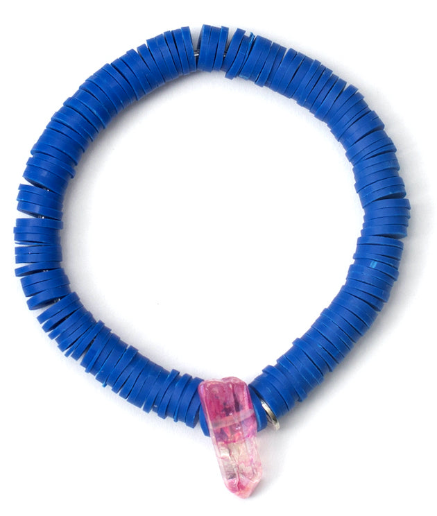A beautiful clear pink quartz crystal and blue 6mm heishi beads is a magical combination!