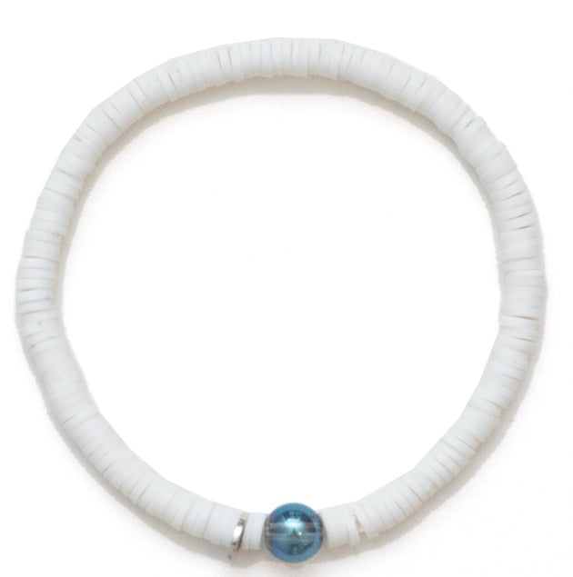White 4mm heishi beads as white as the sand against a Swarovski crystal as blue the sea π