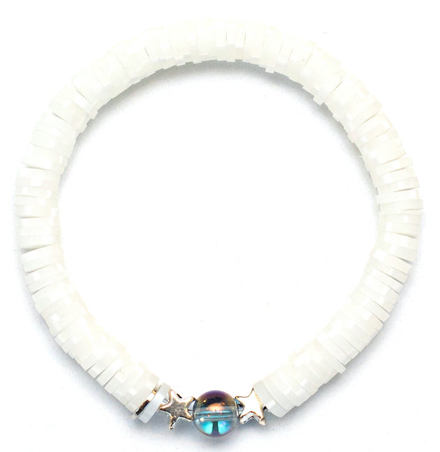 Obsessed! These bright white heishe beads paired with our star studs and Swarovski crystal is a class piece 💫