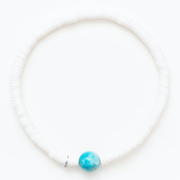 Bright white 4mm heishi beads against a stunning blue glacier stone looks magical!