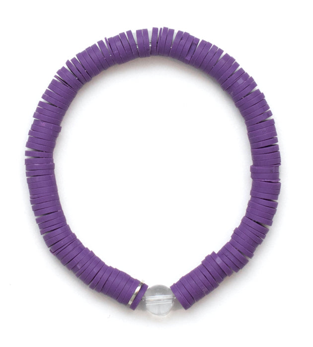 Inspired by the worlds best Grammy! Lily has paired beautiful purple 6mm heishi beads with a Swarovski crystal using her Grammys favorite color!