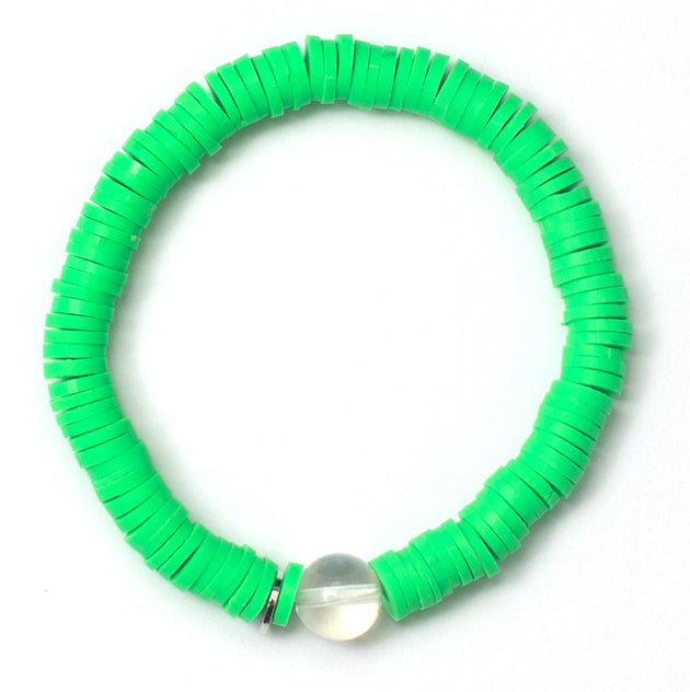 Bright green 6mm heishi beads is a reminder of the beautiful forests of Holtwood and a crystal clear stone as clear as the creeks running through the forests!
