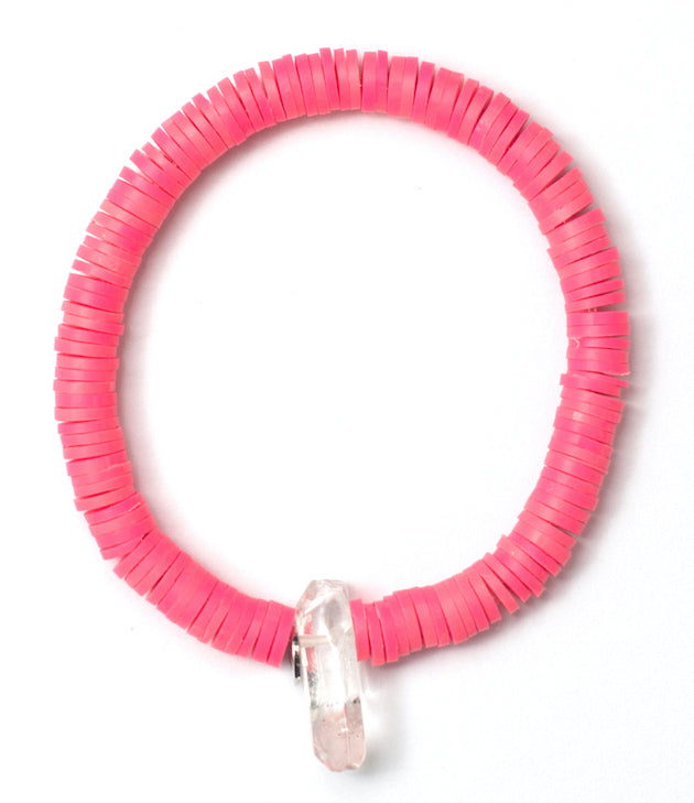 Brightest pink 6mm heishi beads and a clear quartz crystal is a magical as Lily's Llunicorn 🦄 Llunicorns are magical ✨