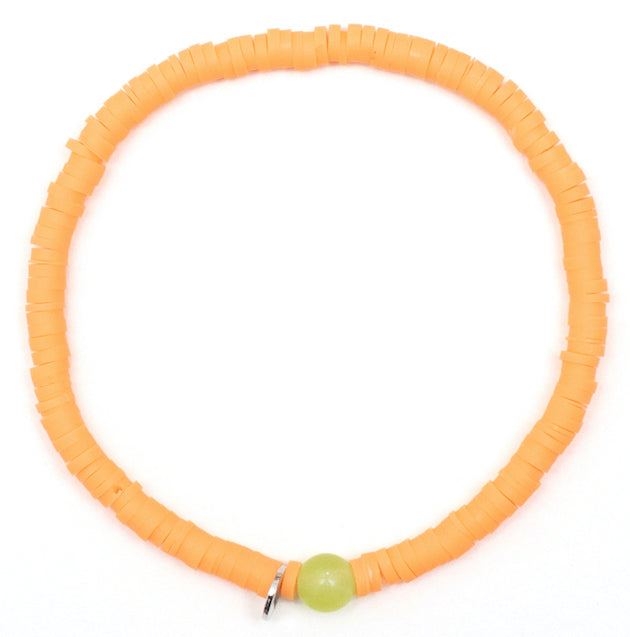 Inspired by the best dad in the world! Orange 4mm heishi beads with a neon green stone is our design of the year!