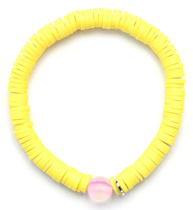 Bright yellow 6mm heishi beads paired with a gorgeous pink stone brings summer vibes!