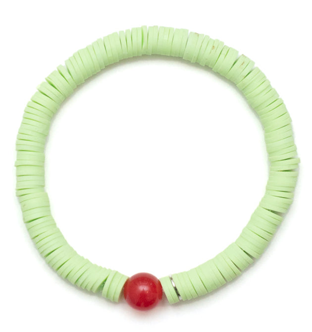 Bright green 6mm heishi beads and a bright red stone represents our nation 🏴
