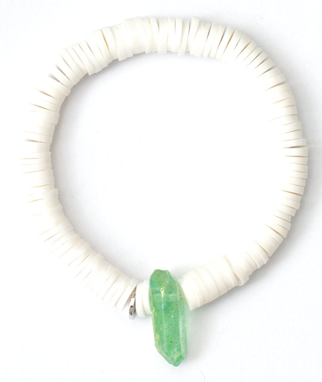 A magical green crystal quartz stone stands out against our white 6mm heishi beads. So stunning!