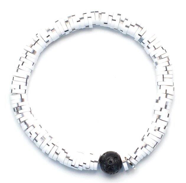 Named after Lily's horse, Zumba, who is white and black polka dots! Black and white 6mm heishi beads with a black volcanic stone 𓃗